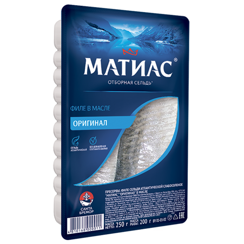 ФИЛЕ СЕЛЬДИ САНТА БРЕМОР МАТИАС ОРИГИНАЛЬНОЕ 250 Г
