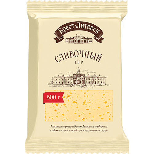 СЫР БРЕСТ-ЛИТОВСК СЛИВОЧНЫЙ ПЛ/ТВЕРДЫЙ НАРЕЗКА-БРУСОК ЖИР. 50 % 500 Г