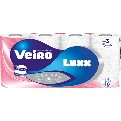 ТУАЛЕТНАЯ БУМАГА ВЕЙРО ЛЮКС 3-Х СЛОЙНАЯ 8 РУЛ
