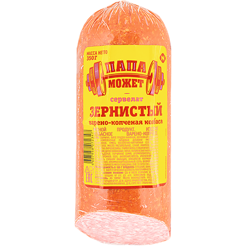 КОЛБАСА СЕРВЕЛАТ ПАПА МОЖЕТ ЗЕРНИСТЫЙ В/К 350 Г
