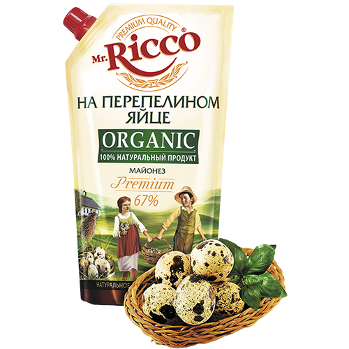 МАЙОНЕЗ МИСТЕР РИККО НАТУРАЛЬНЫЙ НА ПЕРЕПЕЛИНОМ ЯЙЦЕ ЖИР. 67 % 400 МЛ